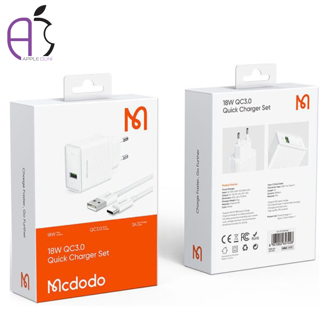 با استفاده از شارژر دیواری مک دودو مدل CH-5750 که از سری محصولات جدید کمپانی «Mcdodo» است میتوانید باتری انواع گوشیهای موبایل و دستگاههای هوشمند خود را در سریعترین زمان ممکن شارژ کنید. توان خروجی این شارژر دیواری 18 وات است که از تکنولوژی کوالکام (QC3.0 و QC2.0) نیز برخوردار است. این محصول دارای یک درگاه خروجی USB است.