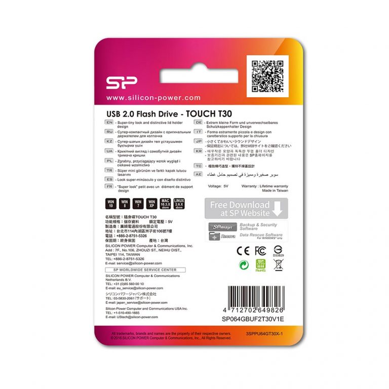مشخصات فنی فلش مموری سیلیکون پاور مدل Touch T30