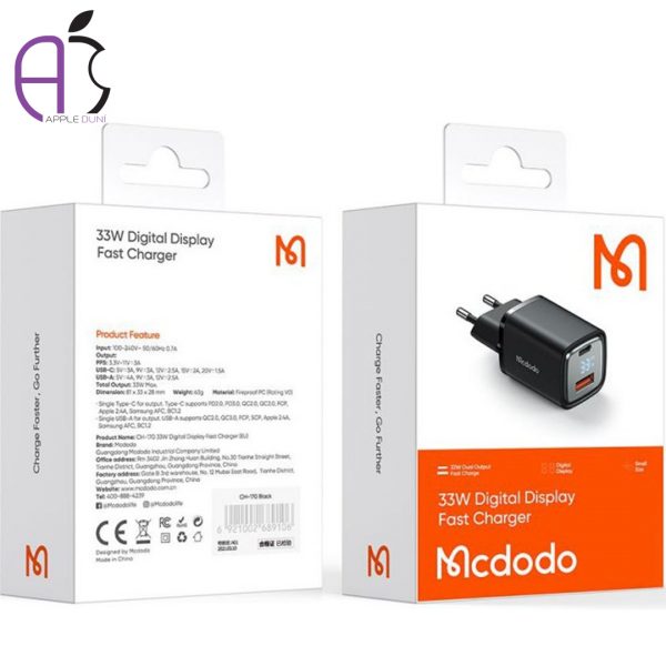 شارژر دیواری مک دودو مدل CH-1701 با توان خروجی 33 وات یکی از محصولات ویژه جانبی است که به افراد کمک میکند با سرعت بالا وسایل الکترونیک خود را شارژ نمایند. این محصول به سرعت وسایل مورد نیاز را شارژ میکند و تکنولوژیهایی که درون آن به کار رفته است از قابلیت فست شارژ پشتیبانی مینماید. از قابلیتهای دیگر آن میتوان به وجود تراشه هوشمند در شارژر و نشانگر دیجیتال اشاره کرد.
